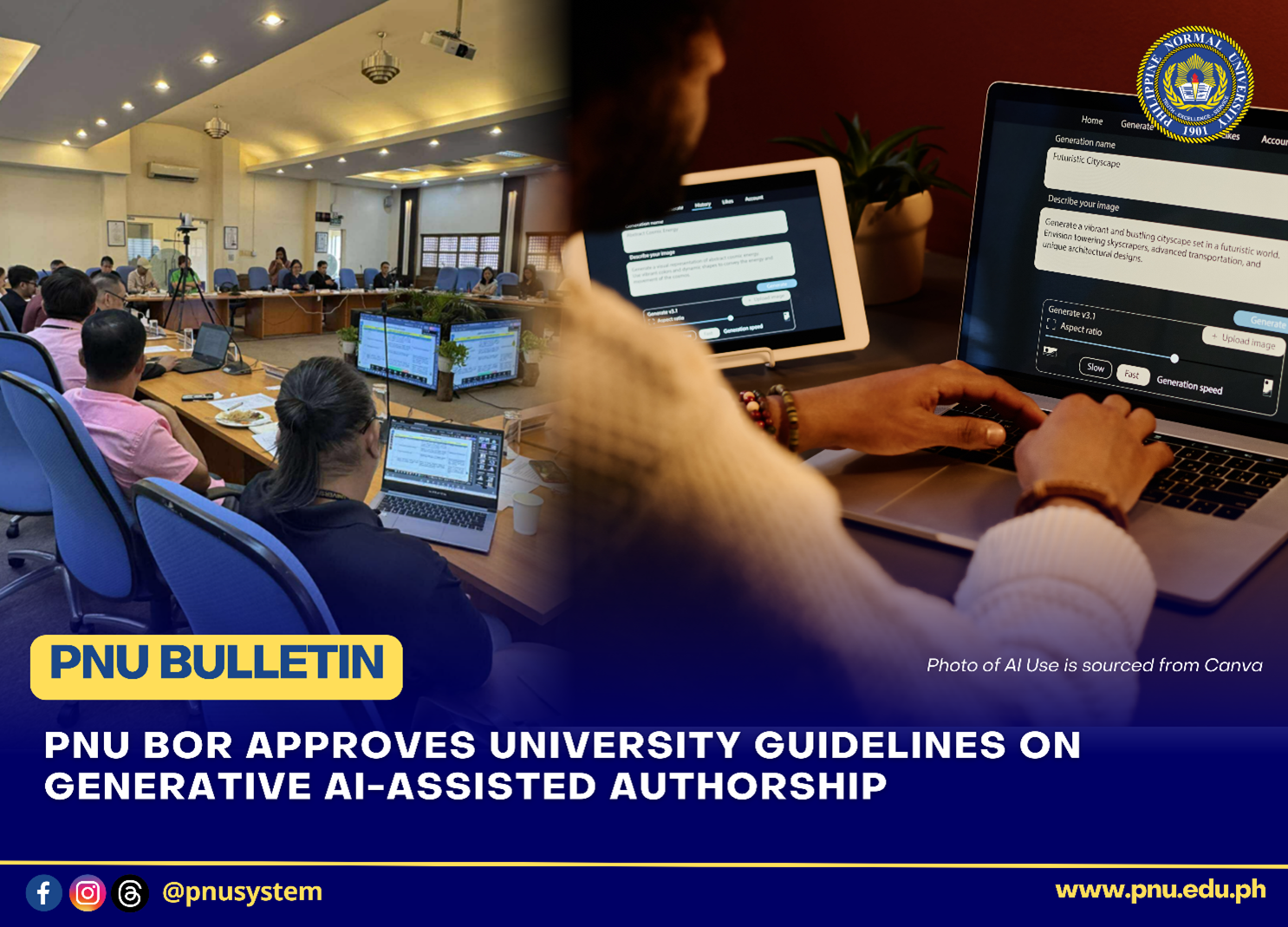 Recognizing the importance of academic integrity and ethical considerations, the PNU-BOR, during its second quarter regular meeting last July 2, 2025, approved the university guidelines, endorsed by the Academic Council, on generative AI-assisted authorship in scholarly, scientific, and creative work. The guidelines apply to academic coursework, research, instructional materials, communication, and documentation across academic and administrative functions in the university that apply to the faculty, students, staff, and affiliated researchers.