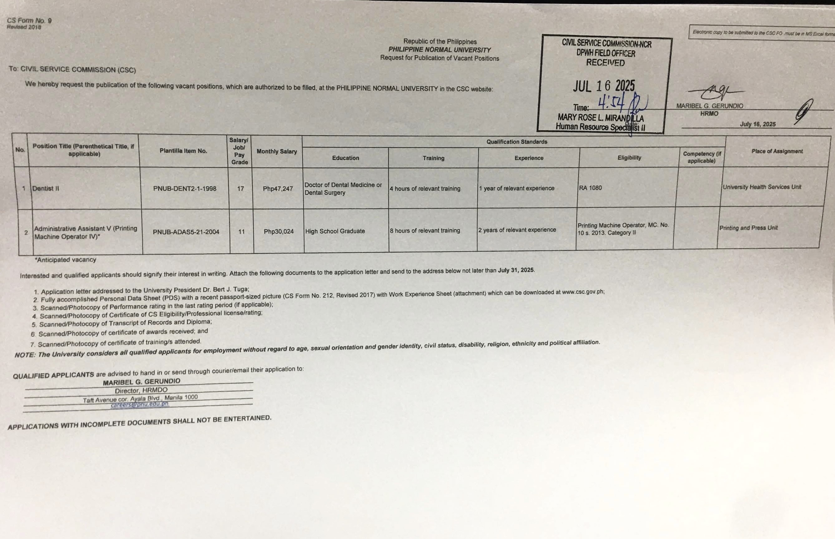 The Philippine Normal University, the National Center for Teacher Education, conferred the prestigious title of Professor Emeritae on two of its most accomplished faculty members, Dr. Wilma S. Reyes and Dr. Erminda C. Fortes, in a solemn ceremony held on September 2, 2025, at the PNU Gymnasium in Manila.