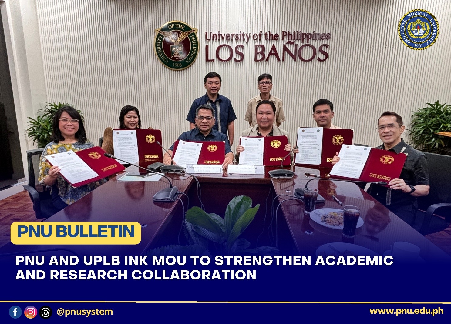 Recognizing the mutual benefits of establishing stronger institutional linkages, the Philippine Normal University (PNU) and the University of the Philippines Los Baños (UPLB) have formally entered into a Memorandum of Understanding (MOU) to promote academic collaboration and foster mutual understanding between the two universities.