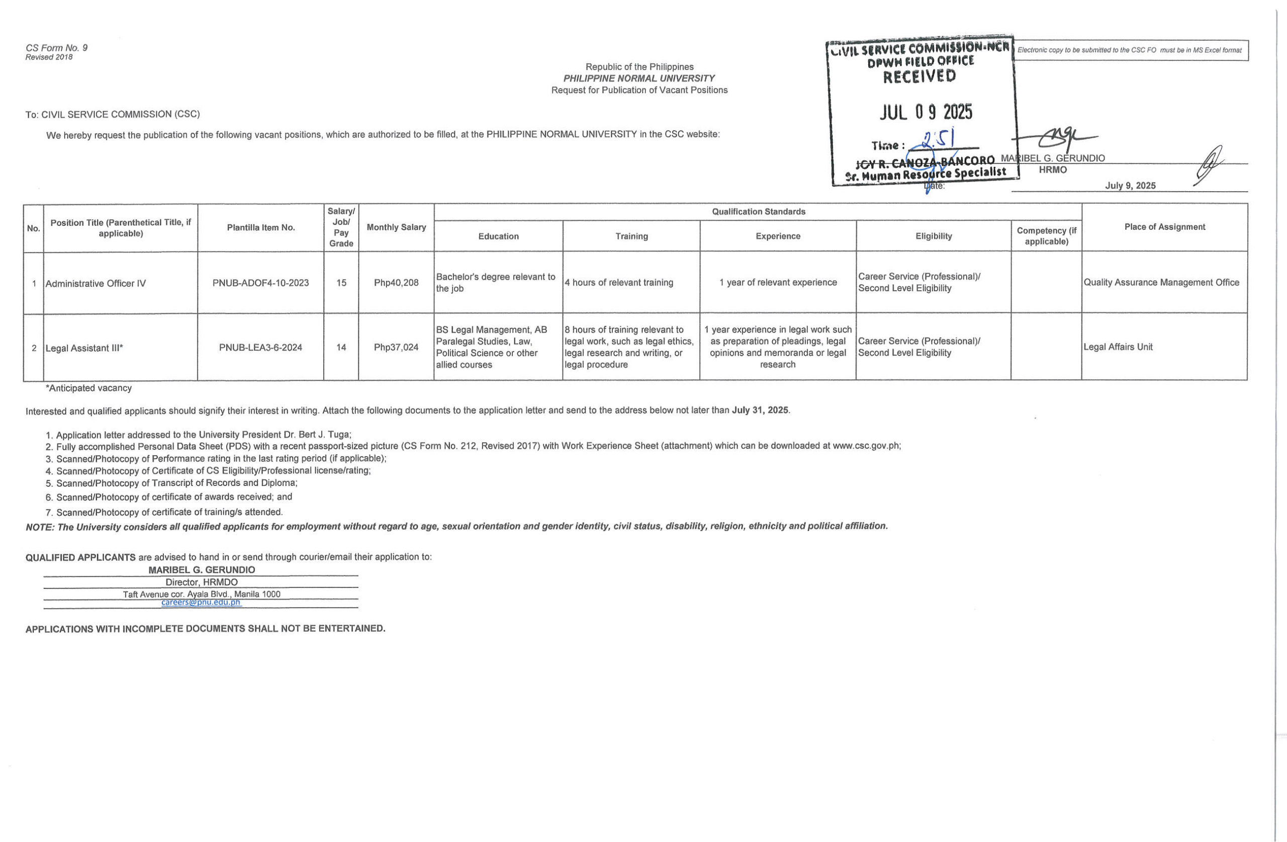 In compliance with RA 7041 (Publication Law) – July 9, 2025