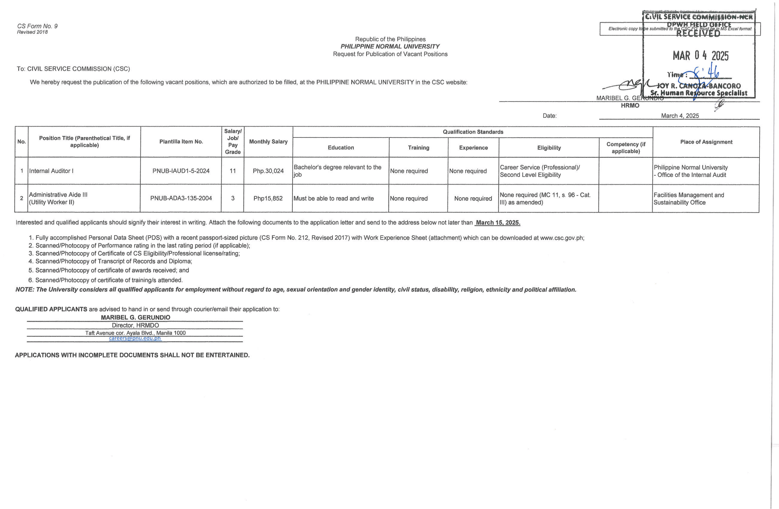 In compliance with RA 7041 (Publication Law) – March 4, 2025