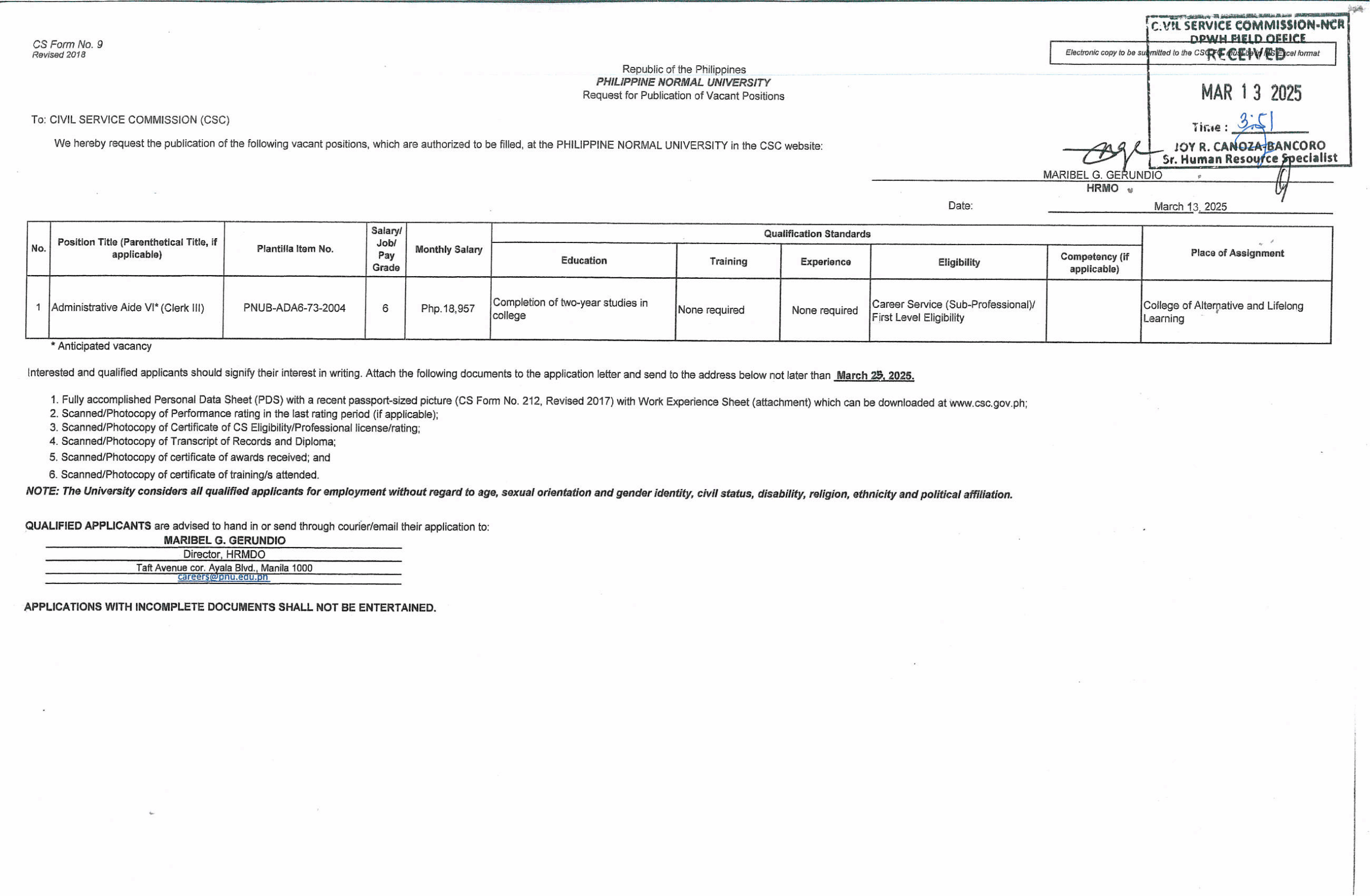 In compliance with RA 7041 (Publication Law) – March 13, 2025
