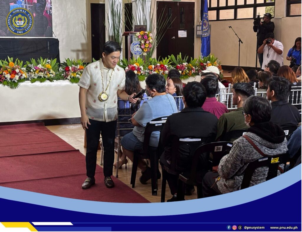 In his convocation speech, Dr. Yee elaborated on the salient parts of the EDCOM II Year 3 report dubbed as “Turning Point: A Decade of Necessary Reforms.” The report was encapsulated into 20 priority recommendations spanning across six key priority areas. Dr. Karol Mark Yee likewise presented a comprehensive action plan for the Philippine Normal University, urging the institution to take a leading role in capacitating other Teacher Education Institutions (TEIs) and addressing critical gaps in the education sector. His proposals center on fostering literacy initiatives and developing remediation strategies for secondary students struggling with basic skills. Dr. Yee also emphasized the need to expand access to specialized programs—such as ECCD, SNED, and Science and Math teaching—in underserved regions through collaborations with local Higher Education Institutions (HEIs). Furthermore, he called for a strategic partnership with the Teacher Education Council (TEC) to align graduate programs with the Expanded Career Progression roles, alongside piloting teacher workforce planning models and conducting policy-driven research on the Localization Law and Master Teacher ratios.