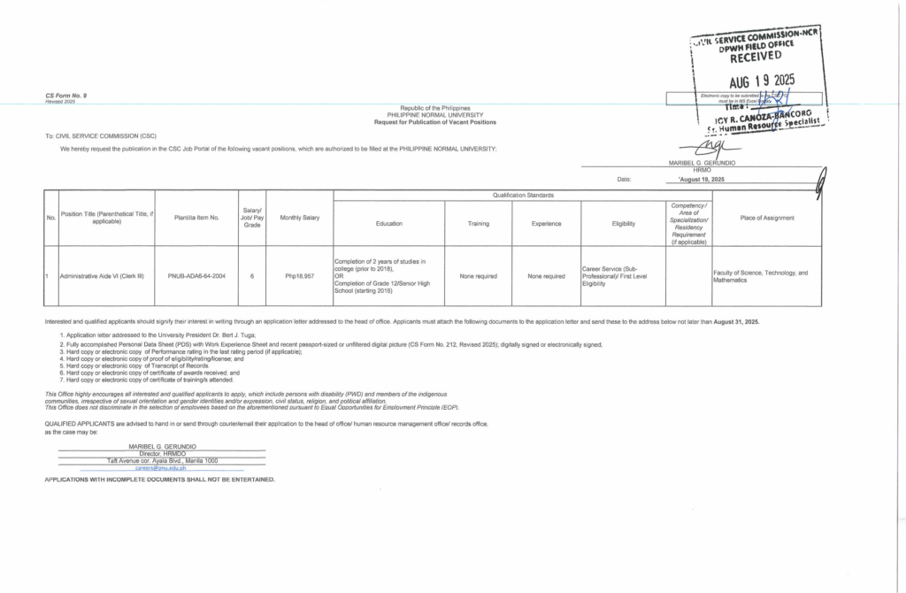 In compliance with RA 7041 (Publication Law) – August 19, 2025