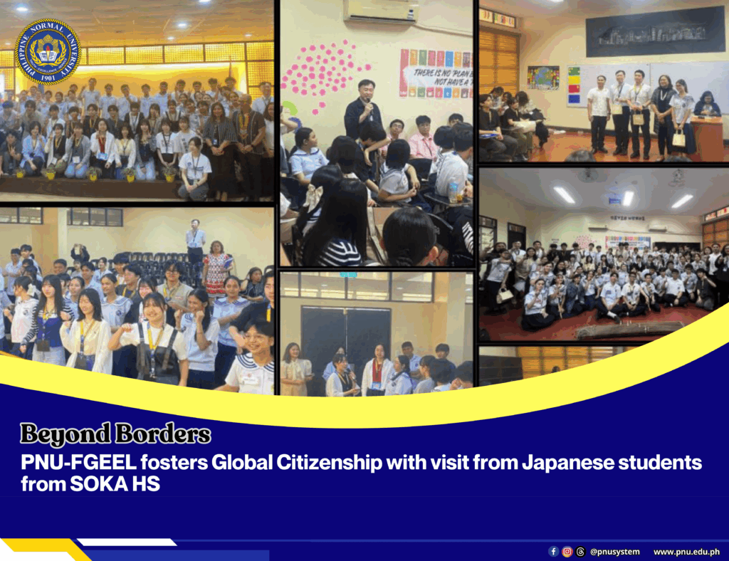 The Philippine Normal University (PNU), through the Faculty of General Education and Experiential Learning – Center for Teaching and Learning (FGEEL–CTL), successfully hosted UGNAY 2026 on January 28, 2026. The event welcomed a delegation of students and officials from SOKA High School (Japan) for a meaningful cultural and educational exchange anchored on the theme, “Bridging Cultures, Building Learners: SOKA High School Meets PNU–FGEEL–CTL.”
