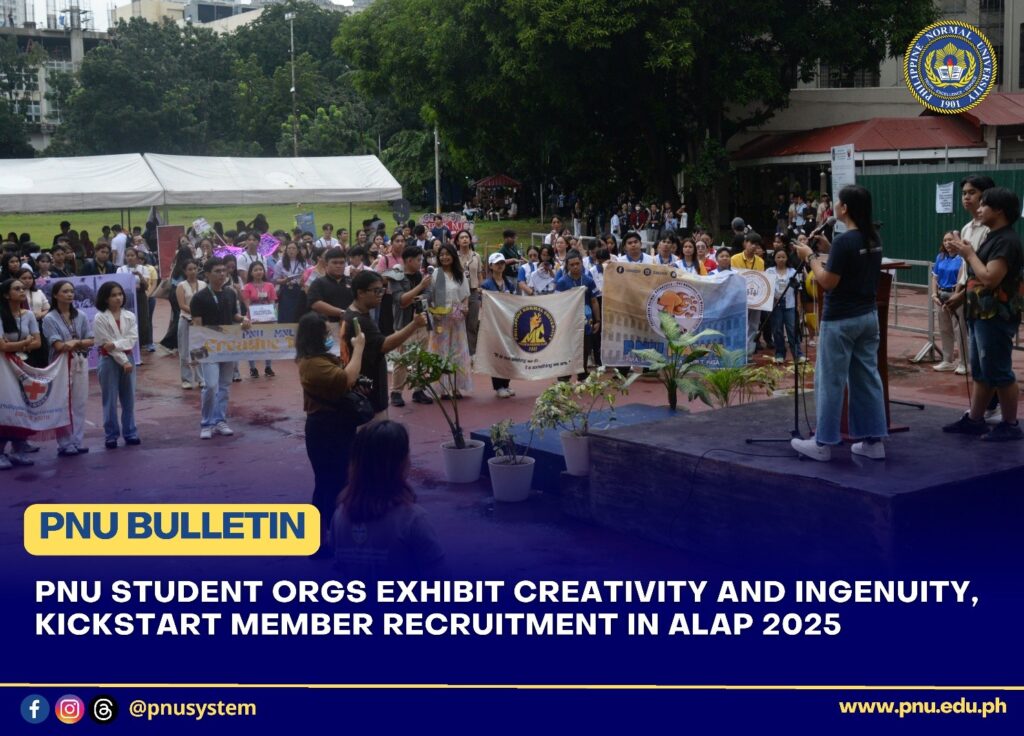 The Philippine Normal University (PNU) hosts this year’s edition of ALAP—the university’s highly anticipated student organization fair—on October 8, 2025. It gathers students, organizations, and other stakeholders in a lively celebration of engagement and community. Despite the gloomy weather, the enthusiasm of PNU students lit up the campus as student organizations proudly showcased their advocacies and initiatives, emphasizing the University’s commitment to fostering not only academic excellence but also the holistic development of its learners. Following the preliminaries, Dr. Denmark L. Yonson, Vice President for Student Success and Stakeholder Services, and Hon. Charmee Verginia, Chairperson of the Central Student Council, delivered their special messages. Both emphasized the importance of involvement and leadership, reminding students that joining organizations can help them grow not just academically but personally and socially as well.