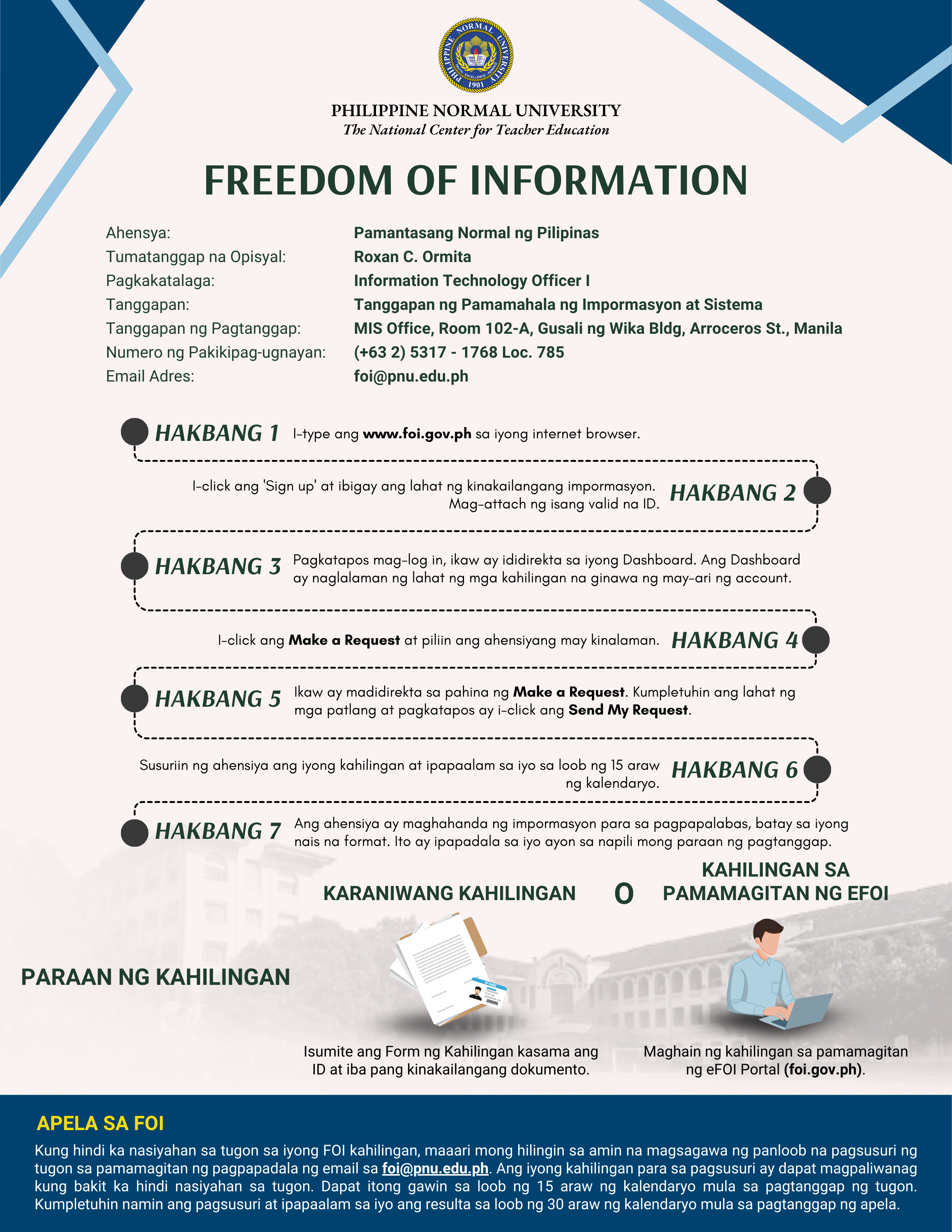 Philippine Normal University Compliance with Section 93 (Transparency Seal) R.A. 10352 (General Appropriations Act of 2014)